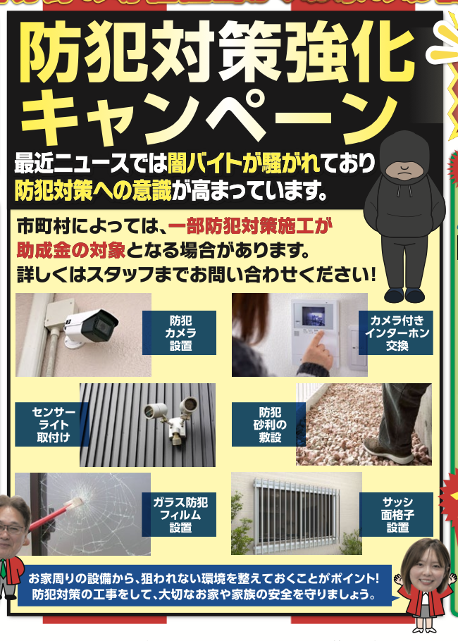 防犯対策の工事をして、大切なお家や家族の安全を守りましょう。