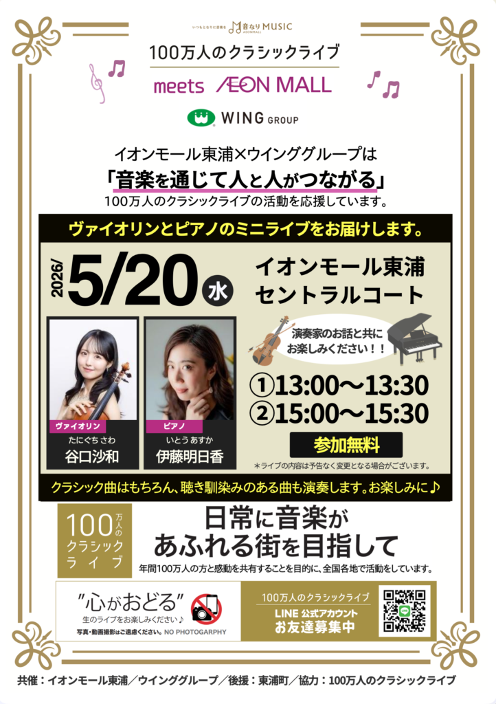 【開催レポート】イオンモール東浦に響く本格音色!「100万人のクラシックライブ」の公式スポンサーとして第1回公演を開催しました