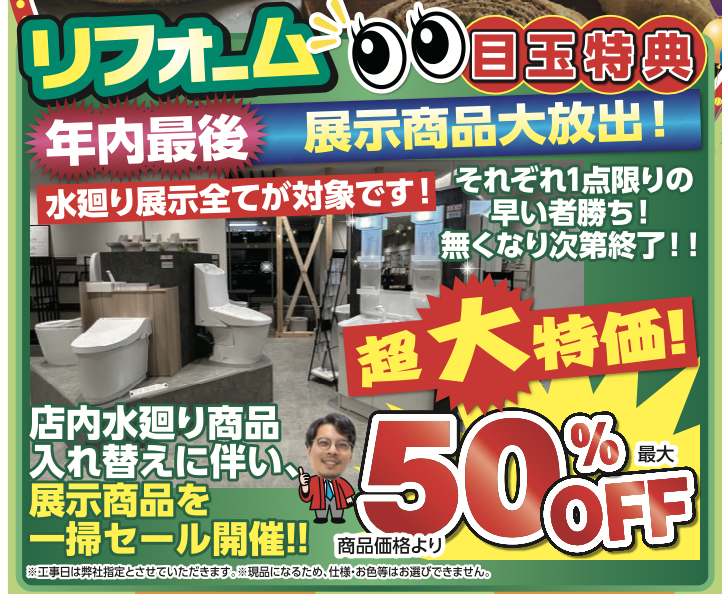 〈リフォーム目玉特典〉展示商品最大50%OFF