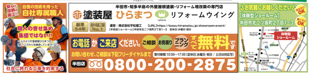 - 〈開催日程〉11/8(土),9(日),10(月),14(金),15(土),16(日) 10:00〜17:00 (会場:リフォームウイング 半田ショールーム) 詳しくはこちら >