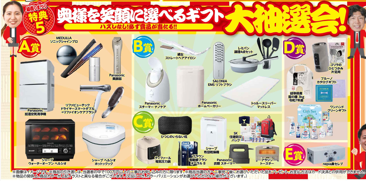 特典5:奥様を笑顔に選べるギフト大抽選会!
