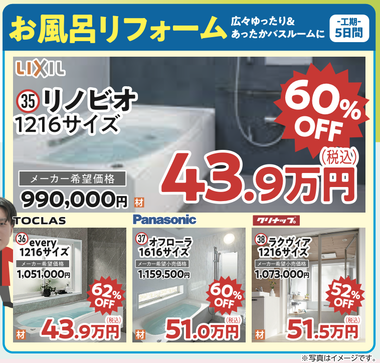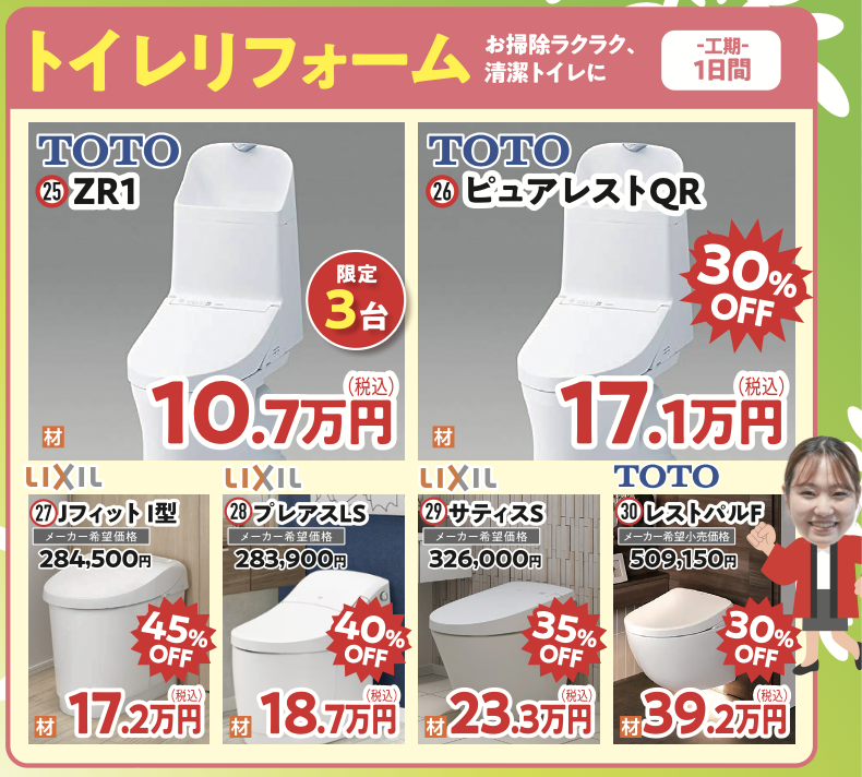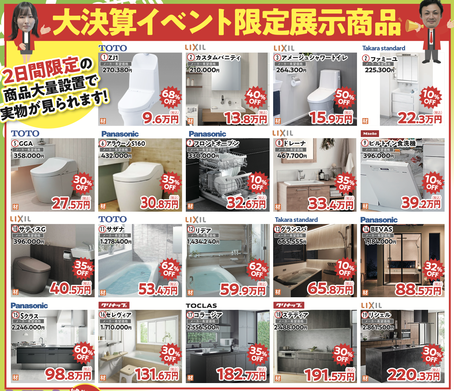 トイレ、キッチン、お風呂、洗面台、その他水廻り商品をイベント限定で多数展示!