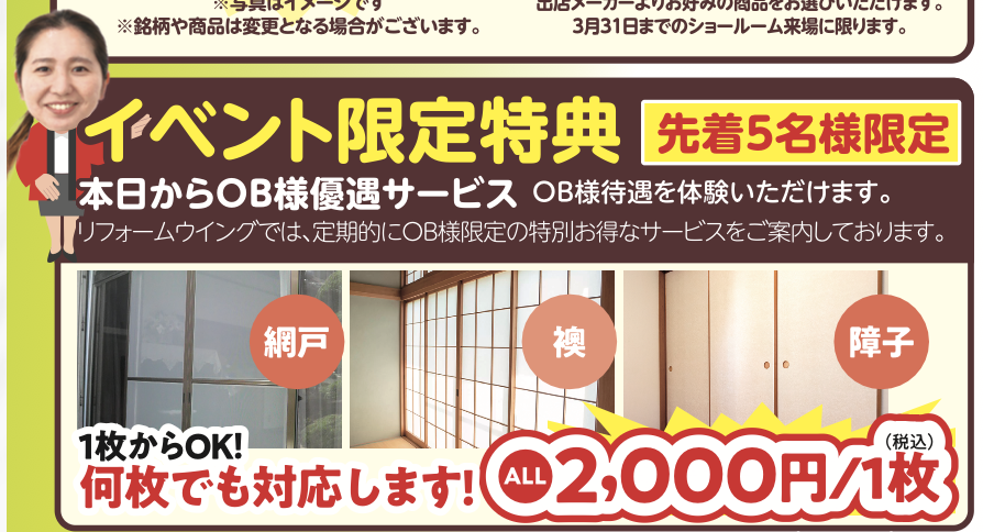 リフォームウイングでは、定期的にOB様限定の特別お得なサービスをご案内しております。
