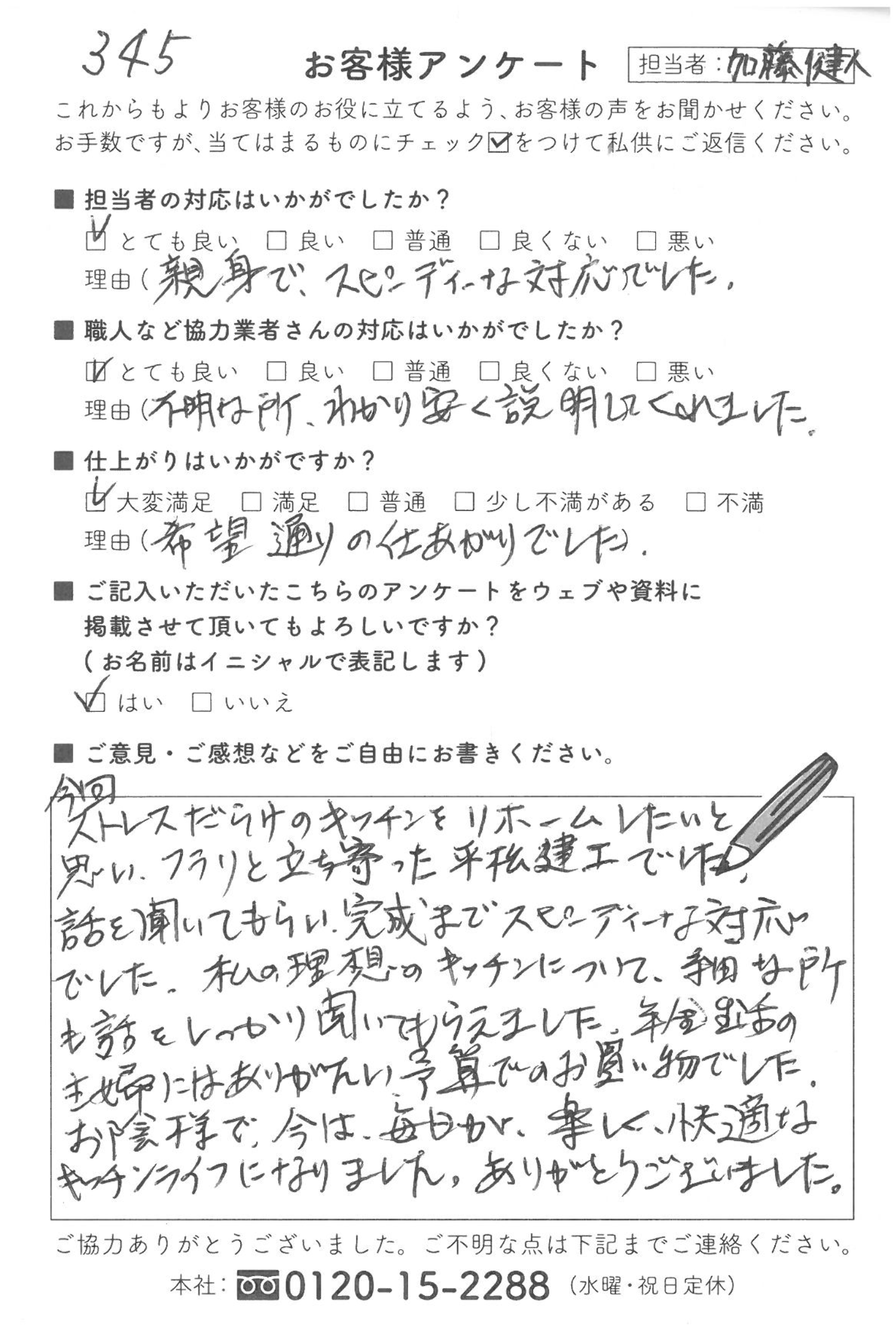 お陰様で、今は毎日が楽しく、快適なキッチンライフになりました。ありがとうございました。