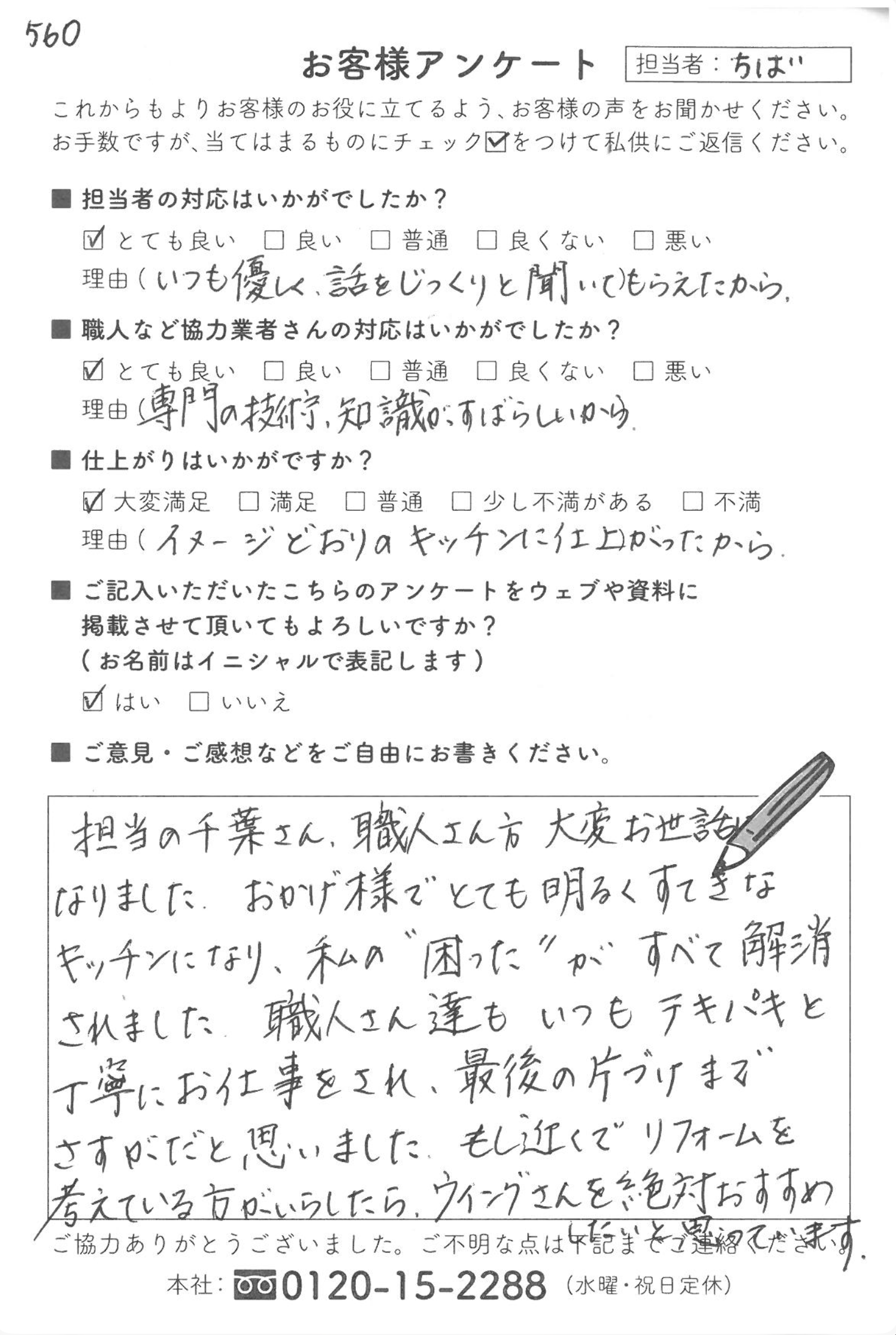 もし近くでリフォームを考えている方がいらしたら、ウイングさんを絶対におすすめしたいと思っています。