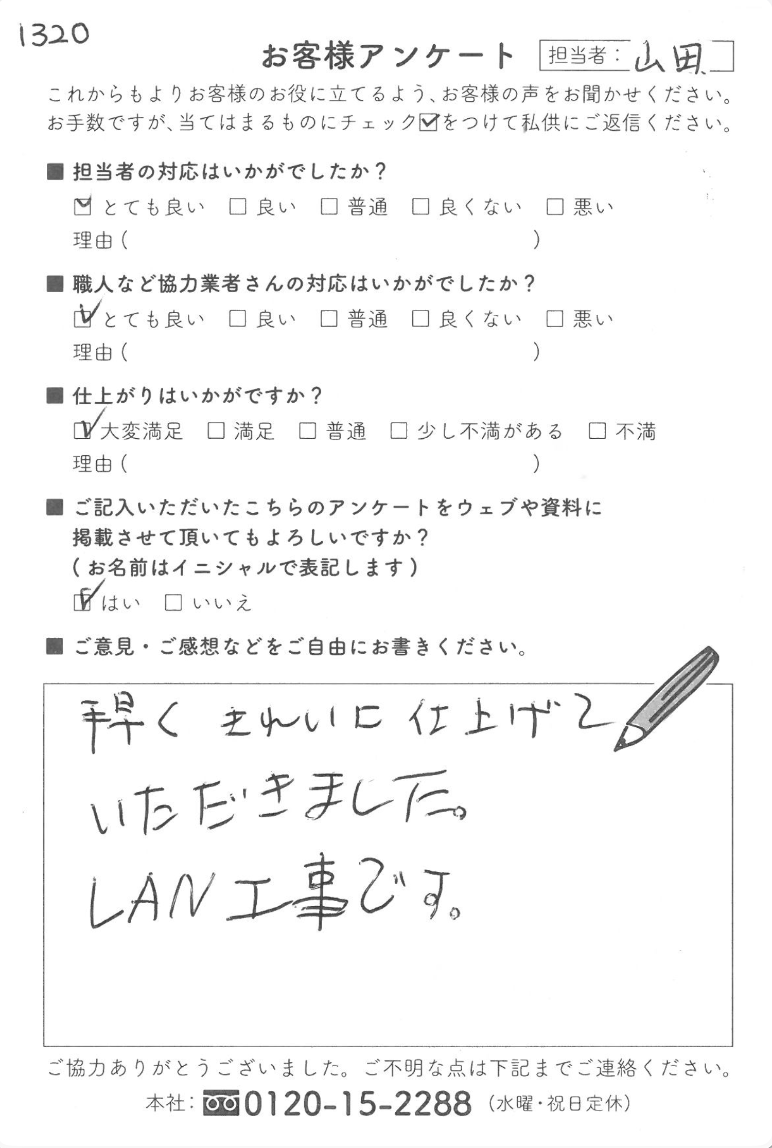 東海市K様邸|電気工事 電気工事 担当者の対応はいかがでしたか? とても良い 職人など協力業者さんの対応はいかがでしたか? とても良い 仕上がりはいかがですか? 大変満足 ご意見・ご感想などをご自由にお書きください。 手早くきれいに仕上げていただきました。 LAN工事です。 担当 営業担当:山田 前の記事 一覧へ戻る