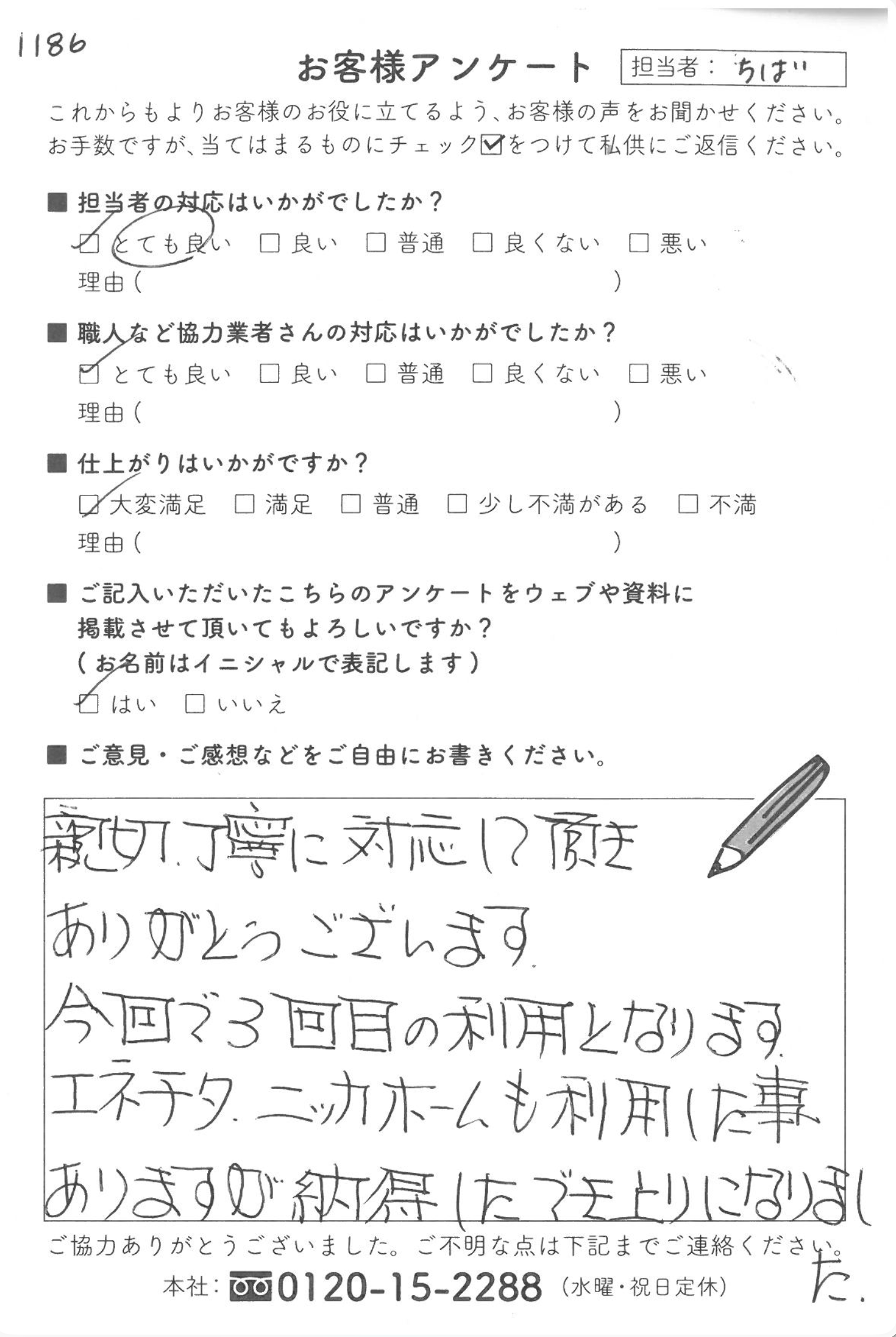 知多市O様邸|クロス張り替えリフォーム クロス張り替えリフォーム 担当者の対応はいかがでしたか? とても良い 職人など協力業者さんの対応はいかがでしたか? とても良い 仕上がりはいかがですか? 大変満足 ご意見・ご感想などをご自由にお書きください。 親切、丁寧に対応していただきありがとうございます。 今回で3回目の利用となります。 エネチタ、ニッカホームも利用したことありますが、納得したできあがりになりました。 担当 営業担当:千葉洋人 前の記事 一覧へ戻る