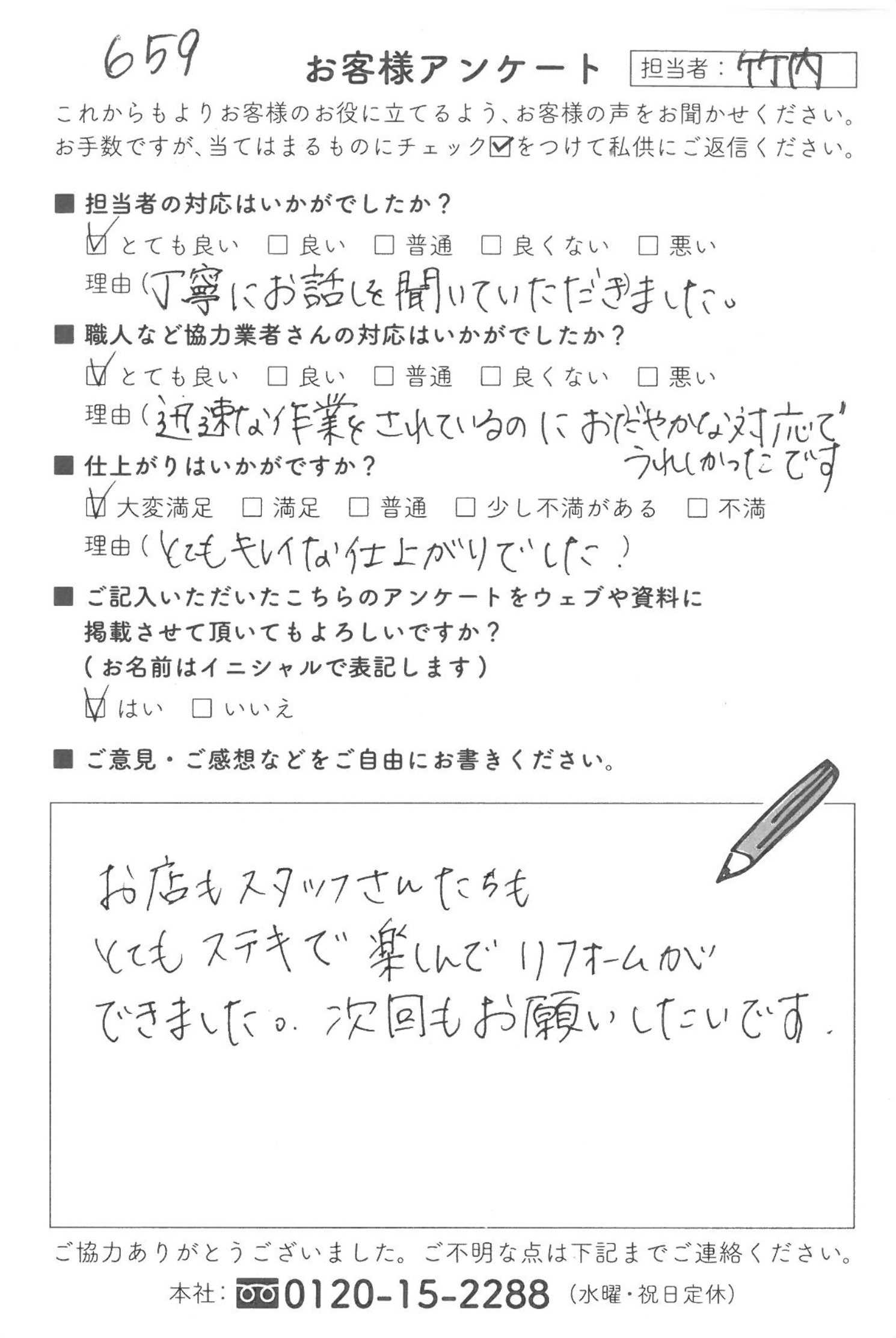 お店もスタッフさんたちも、とてもステキで楽しんでリフォームができました。
