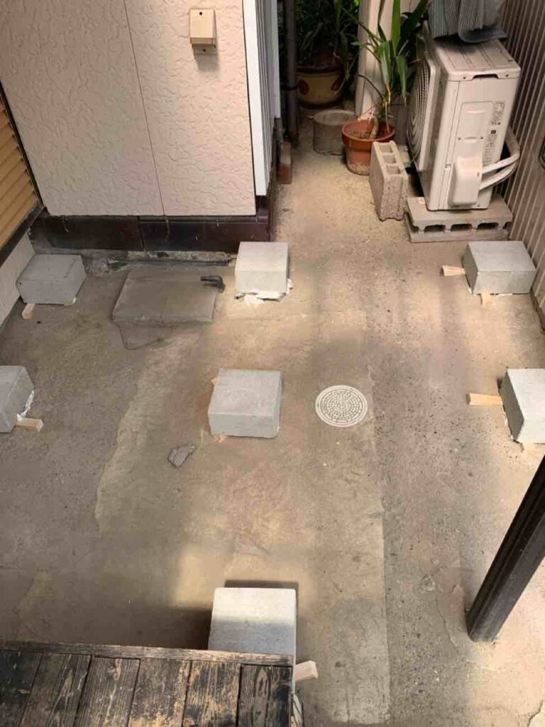 母屋と離れを行き来するために段差があるため転倒したことがあるそうで、ウッドデッキを造作して繋げたい。