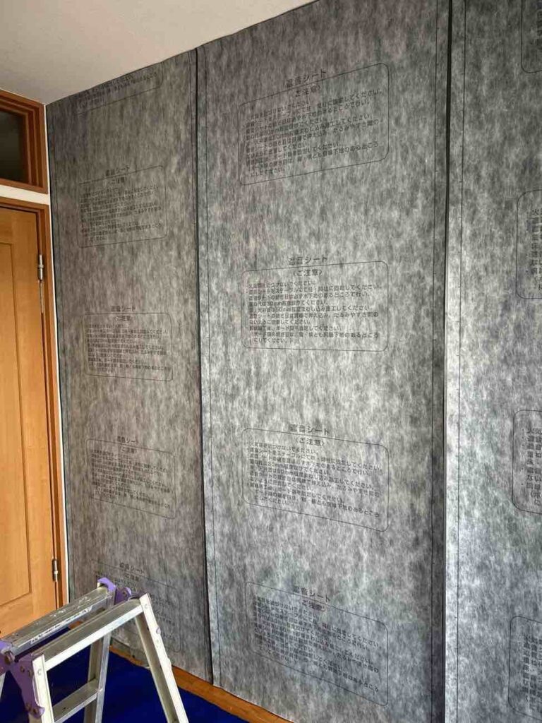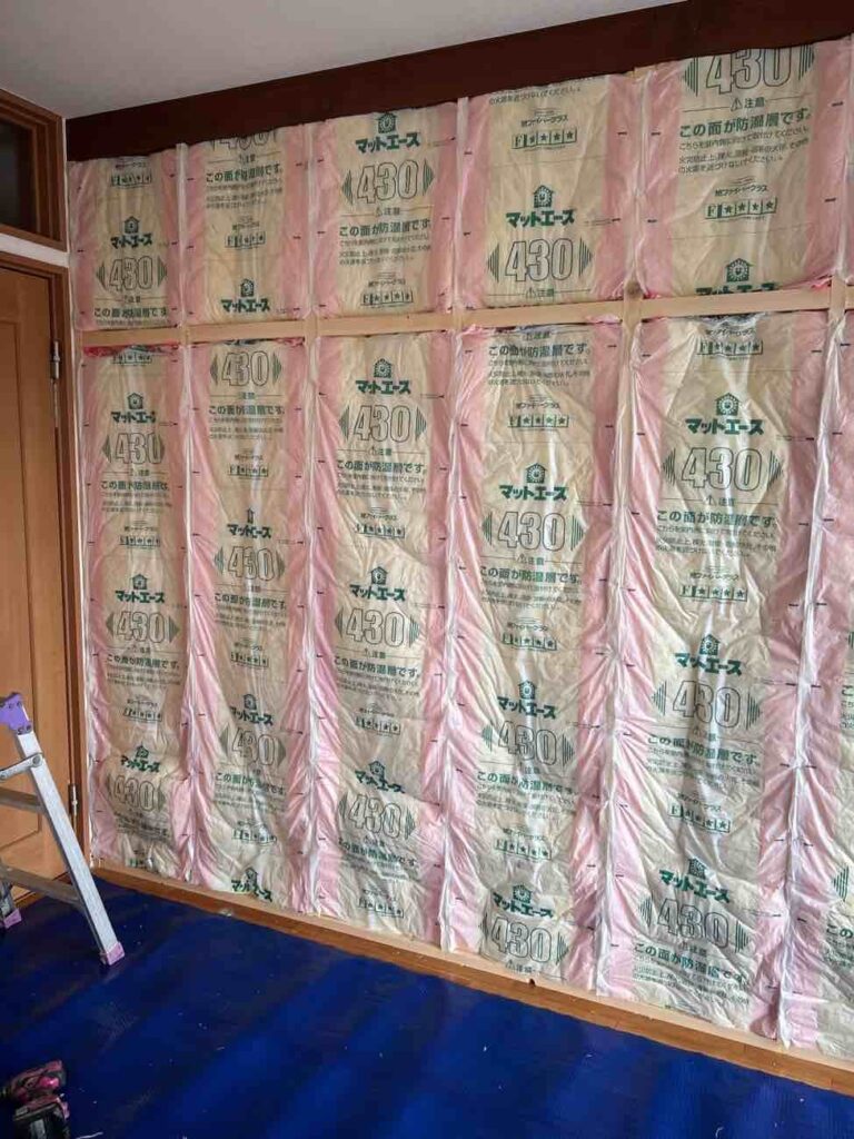 石膏ボードと頑丈な下地による壁作成: しっかりとした木材(105×30)で骨組みを作り、その上に石膏ボードを張ることで、耐久性と遮音性を兼ね備えた壁を新設しました
