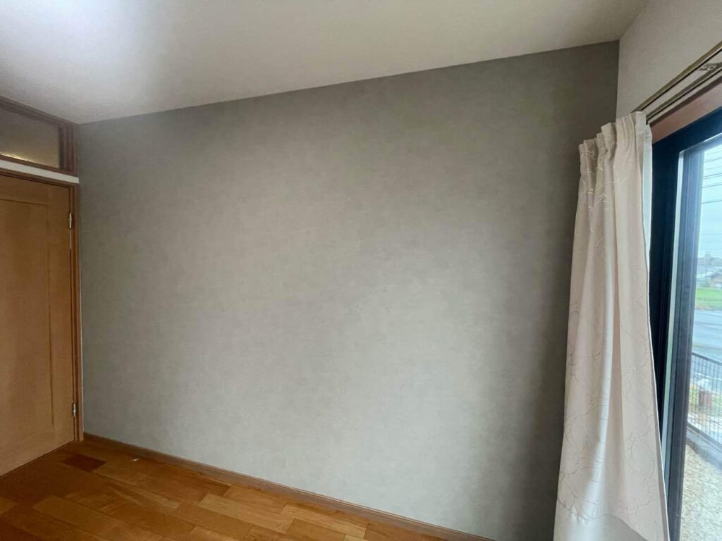 「サンゲツ AA級」クロスによる高品質な仕上げ: 仕切られた新しい壁には、デザイン性と質感に優れたサンゲツ社のAA級クロスを採用しました