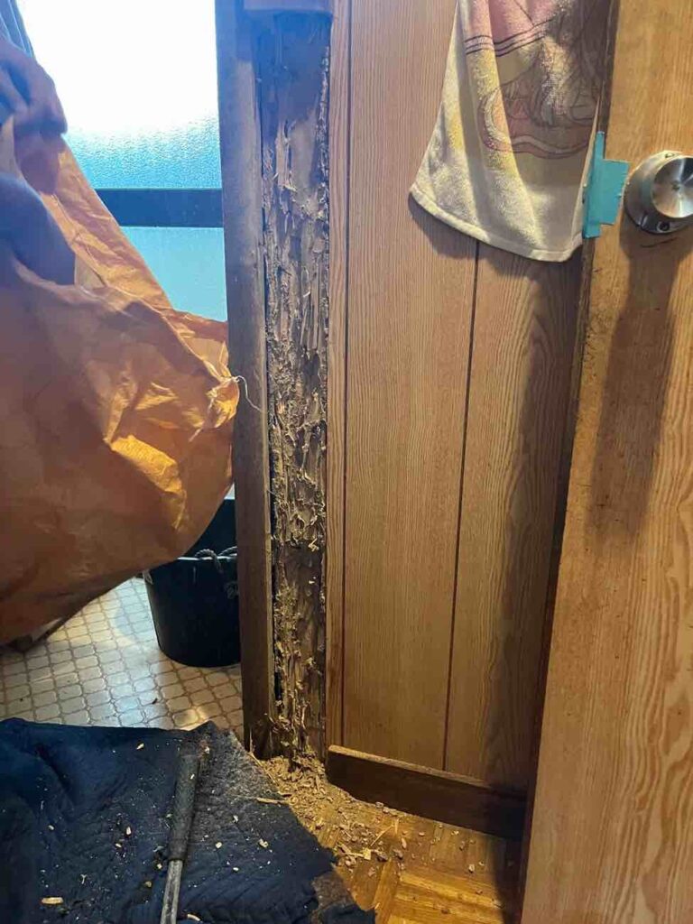 ドア枠・下地の徹底補修 シロアリ被害を受けた箇所を特定し、新しいドア枠材を用いて丁寧に仕上げました 。