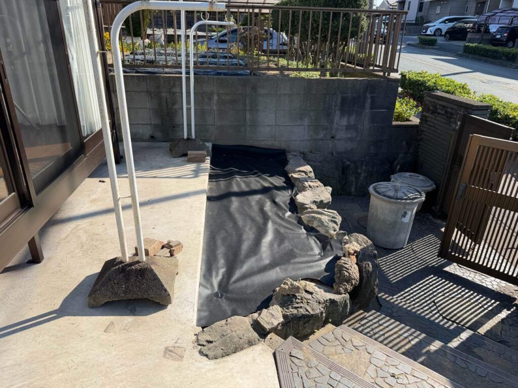 LIXIL:フェンスAB YS3型 目隠し率が高く、プライバシーをしっかり守りながら風を通すデザインが特徴です 。アルミ製のため、木製のような腐食の心配がなく、耐久性に優れています 。 防草シート & 砂利敷き(材工) 地面をシートで覆った上に砂利を敷き詰めることで、雑草の発生を長期的に抑えます 。これにより、腰を痛めるような草むしり作業から解放されます 。 |